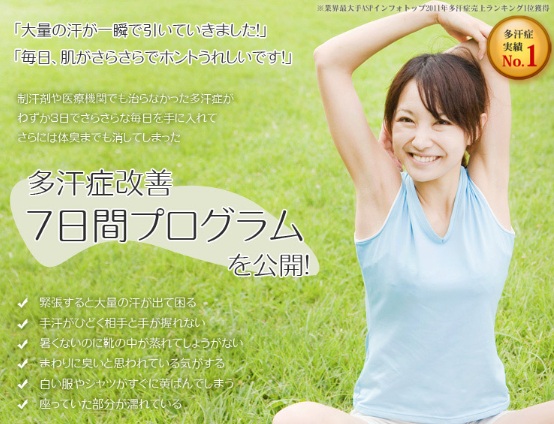 久保田式多汗症改善7日プログラムは、あなたの多汗症を根本的に治すことで改善を図る方法です。